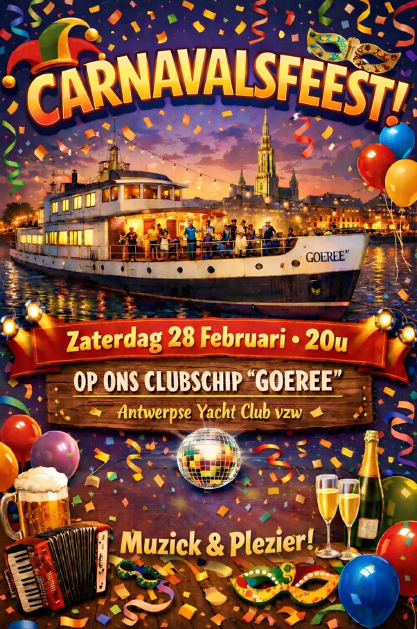 Op zaterdag 28 februari is het weer tijd om de remmen los te gooien, want we organiseren een carnavalsfeest op ons clubschip Goeree!